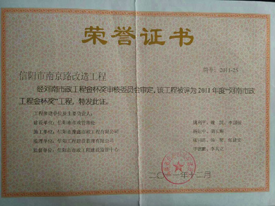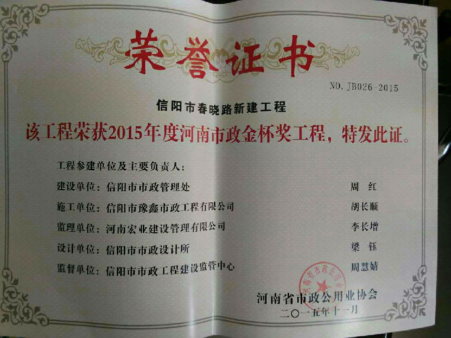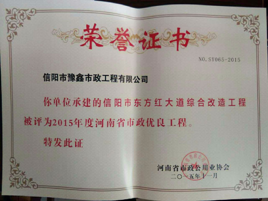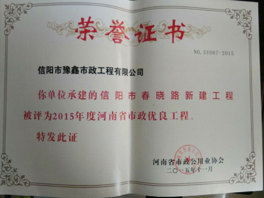 好風憑借力,送我上青云。近年來,公司積極參與城市市政基礎設施建設施工,積極參與市場競爭,先后承擔施工了市政府重點工程南京路道路改造工程、春曉路道路改造工程,東方紅大道道路改造工程、龍江東路新建工程等重點民生工程,其中南京路道路改造工程被省建設廳評為“中州杯”, 春曉路和東方紅大道道路改造工程被省建設廳評為“省優(yōu)工程”,成為城區(qū)一道道亮麗的風景線。參與施工了市典范小區(qū)“臺北城上城”、“恒大名都”以及師范學院、職業(yè)技術學院、交警支隊和軍區(qū)道路工程,參與施工了雞公山管理區(qū)、南灣管理區(qū)、明港鎮和羅山縣等部分道路小區(qū)工程施工,累計大小各類施工工程三百余項,企業(yè)影響力不斷擴大、輻射力不斷增強,市場份額不斷提高,企業(yè)信譽不斷彰顯,為信陽城市建設做出了積極貢獻,為企業(yè)的可持續(xù)發(fā)展插上了騰飛的翅膀。